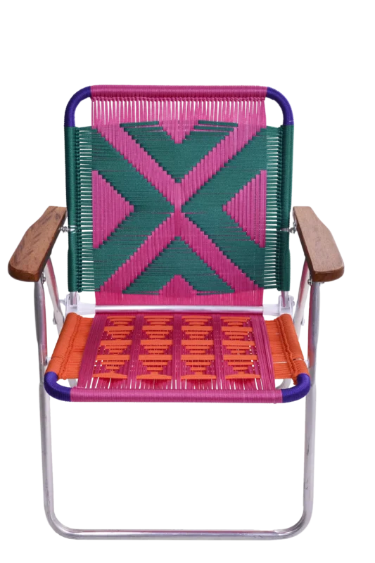 A nossa cadeira dobrável tramada à mão, com desenhos incríveis e combinações de cores surpreendentes, é para mentes inquietas e criativas como a sua! Trata-se de um design artesanal impecável, elegante e sofisticado, que irá se destacar em sua residência como um objeto de arte muito funcional e lúdico. O assento e encosto são tramados com fios náuticos em diversas cores, ideais para explorar vários ambientes de sua casa, seja interno ou externo. Os braços das cadeiras são feitos com madeira maciça, podendo existir variações de desenho e cor, dependendo do lote da madeira. Cada peça é única!